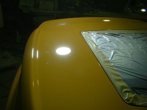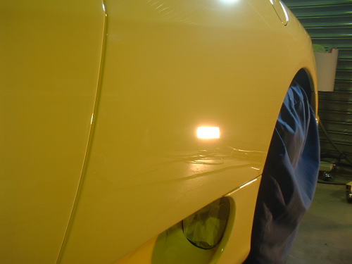 | リアエンジンフードは傷だらけですね。 | 磨き後 フェラーリは、塗装が柔らかくそれほど膜圧もあまりないので慎重に! |