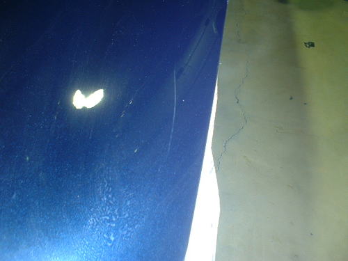 | リアフェンダーにも傷が・・・。 | ボンネットやはり傷が多いです。 太陽の周りに傷の渦見えます。 |