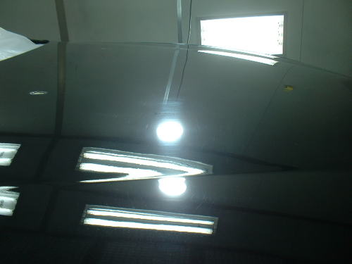 | いきなり仕上がりです。ごめんなさい。 ボンネットの傷はなくなってるでしょう? 良い映りこみです。 |